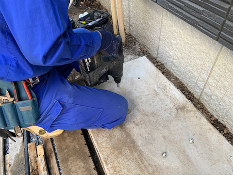 設置位置を確認し本体を固定する為に基礎アンカー打設を行います。