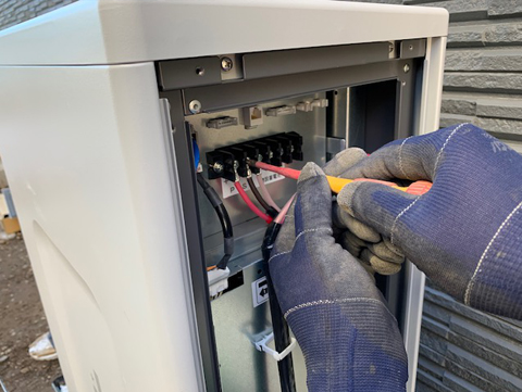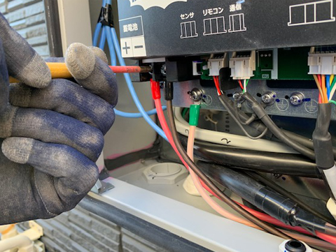 配管敷設・本体据付後、本体とパワコン内の結線を行います。